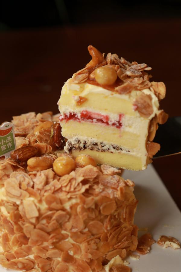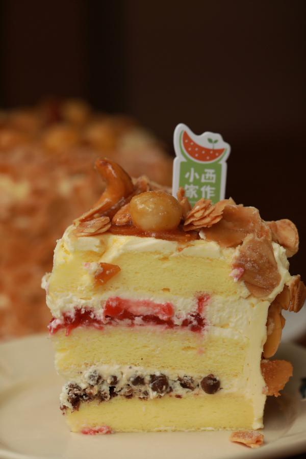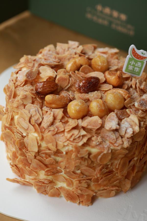 蛋糕底依然是小西家作最传统的牛乳戚风,柔软绵密,和海盐奶油琥珀坚果配在一起,没什么人能抗拒。