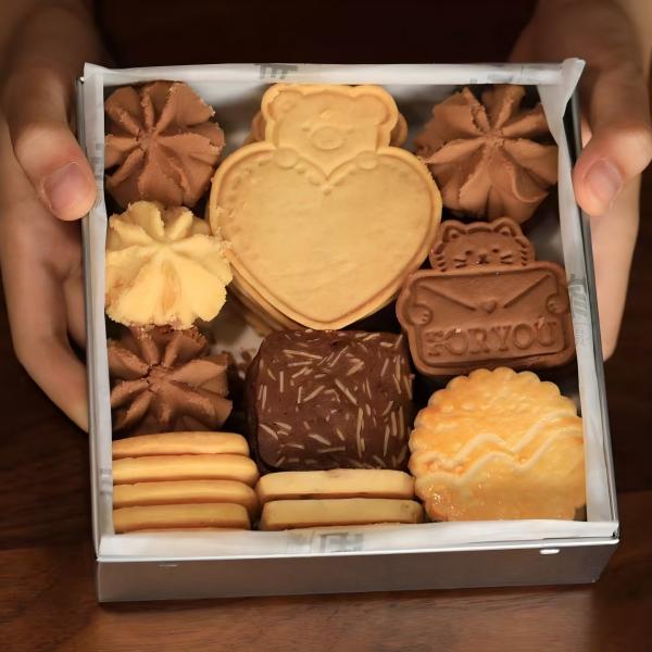 酥松绵密的曲奇在舌尖轻轻一抿就化开,浓郁奶香层层递进,可可的醇厚、坚果的香脆、椰蓉的清甜在口中交织,每一口都是恰到好处的甜而不腻,酥到掉渣的幸福感直接拉满!