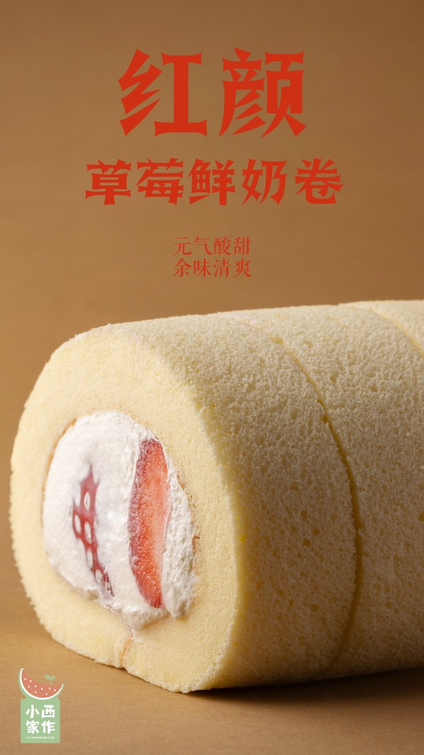 红颜草莓鲜奶油卷:无添加手工鲜作,冬日元气酸甜